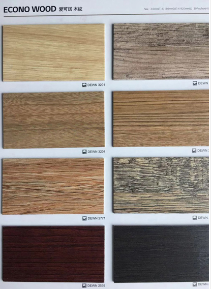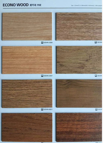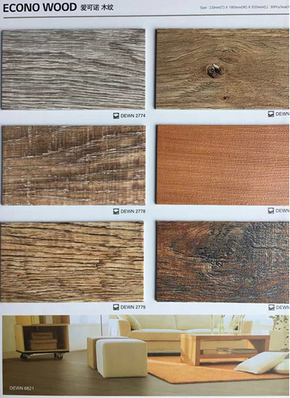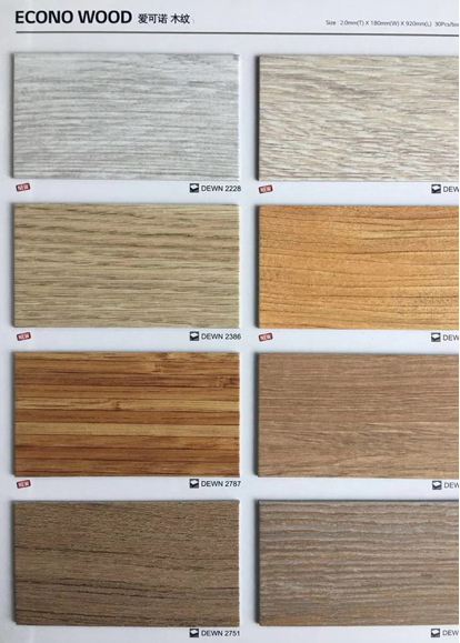 愛可諾木紋(ECONO WOOD)特點:大規格設計,充分體現紋理效果;逼真壓花和實木腳感;不使用有害的鄰苯二甲酸酯(DOP);使用場所:寫字樓、辦公室等辦公場所,使用地暖設施的住宅空間。
