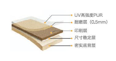 0.5mm純PVC表面層的使用及PUR處理后,耐久性得到進(jìn)一步提升